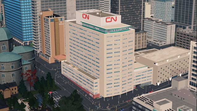 Add an 18-floor office tower inspired by the Canadian National Railway Company headquarters to your Cities: Skylines city. The mid-century design of the building seamlessly blends into any urban landscape. You can choose to place the main tower and side building together for a connected look or use them separately to add a touch of Canadian flair to your cityscape. Give your city a touch of elegance with this unique and versatile building mod.