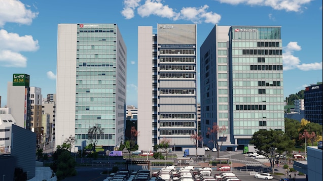 This mod features three modern office buildings located in Iidabashi, Chiyoda Ward, Tokyo, with heights equivalent to around 13 floors but taller than neighboring apartment buildings. The detailed models have textures sized at 1024x1024 and triangle counts ranging from 10,000 to 12,000. Consider trying out this mod to enhance your city’s skyline with these high-quality, free assets.