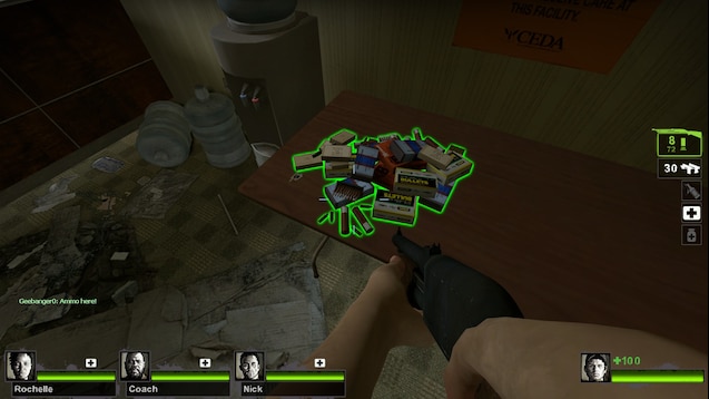 “Easy Item Ping” is a convenient mod for Left 4 Dead 2 that lets you easily mark items for your team by holding the WALK key and shoving the item. The marked item will have a bright green outline visible through walls and from a good distance, making it highly noticeable for your teammates to locate. This feature saves you from having to wait near the item for your team to find it. Additionally, a chat message will inform all players that an item has been located, eliminating the need for you to communicate it manually. Try out this mod to enhance teamwork and streamline item sharing in the game!